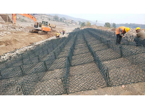 Ecological material for water projects, slope protection. Steel wire cages, high strength. Filled with stones, aids plants, reduces erosion.